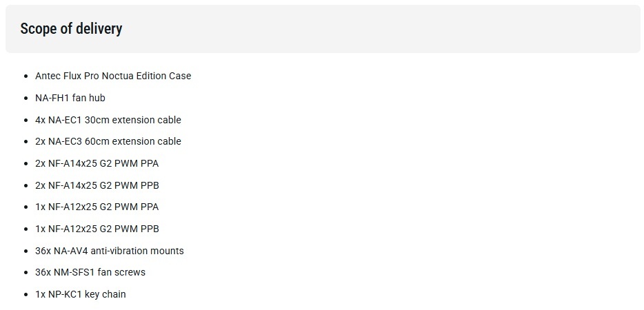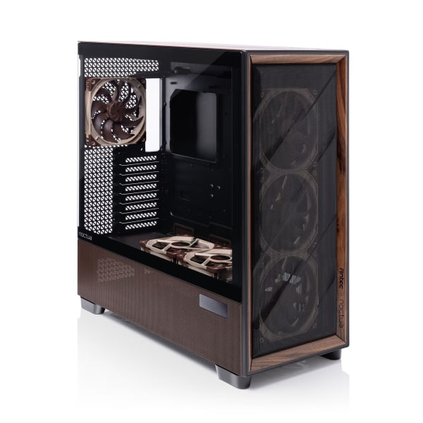 Reflecting its inner virtues on the outside, the Flux Pro Noctua Edition comes with dark brown accents on the side and top panel as well as brown silicone grommets and subtly placed Noctua logos on the top, side and front. Wearing its colours with pride, the Antec Flux Pro Noctua Edition is the perfect choice for everyone who wants to build a high-performance system that runs as quiet as possible.